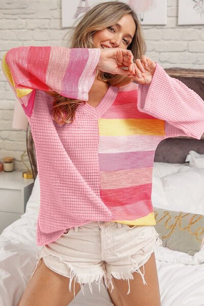 BiBi Striped Contrast Waffle Long Sleeve Top